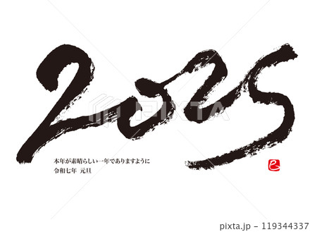 筆文字の2025年の年賀状テンプレート。ベクターイラスト。(巳年)