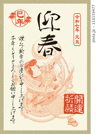 2025年賀状テンプレート「御朱印風デザイン」迎春 手書き用スペース付