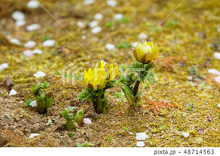 咲き始めた庭の福寿草
