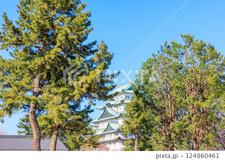 春風に揺れる八分咲きの桜|名古屋城の情景