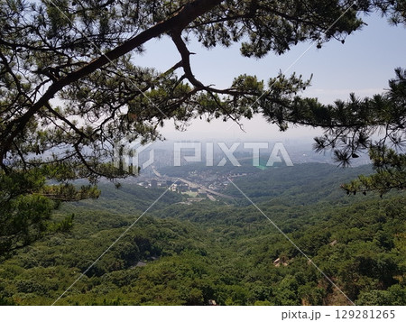 people view sakura tree tunnel and Fukuoka city view at Nishi park