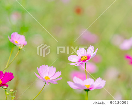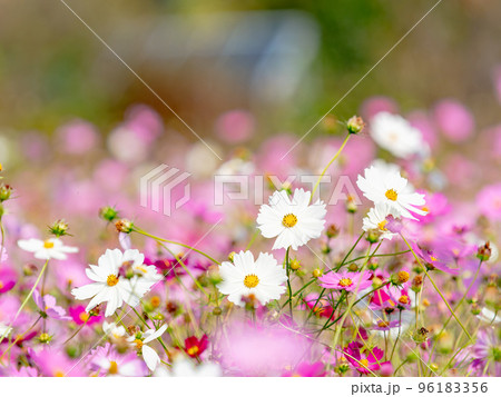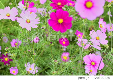 秋の景色 可憐でかわいいカラフルなコスモス