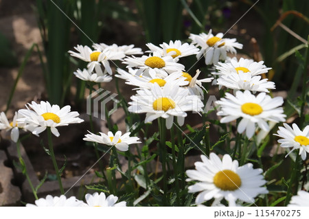 初夏の庭に咲くフランスギクの白い花