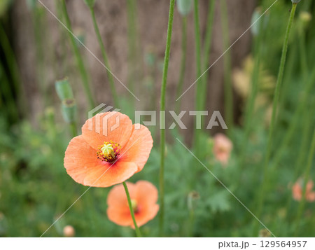左下に配置したアップのナガミヒナゲシの花