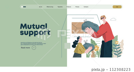 Mutual Support: Pick up fallen item -modern flat vector concept illustration of man collecting fruits that fell from woman's bag A metaphor of voluntary, collaborative exchanges of resource, services