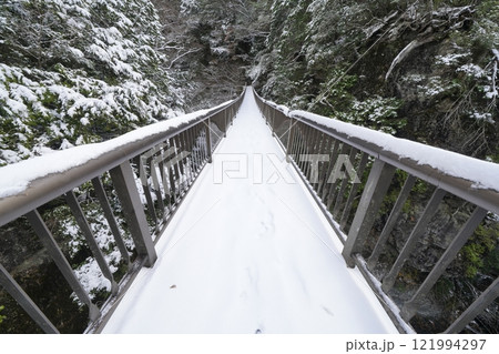 雪積もるミタライ渓谷の哀伝橋(奈良県吉野郡天川村)