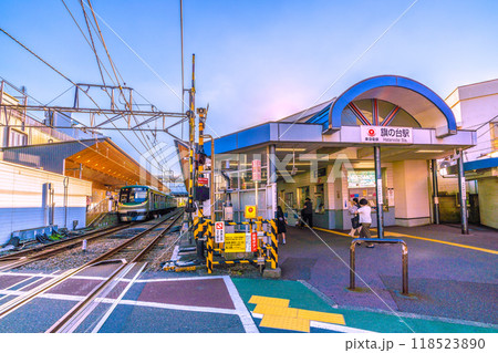 日本の東京都市景観 東急電鉄 旗の台駅 大井町線のりば 池上線蒲田方面。奥は旗の台三丁目商店街