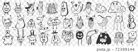 Scary cartoon characters hand drawn doodle set