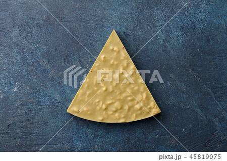 Chocolate triangle pieces on blue background