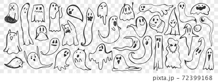 Ghost hand drawn doodle set