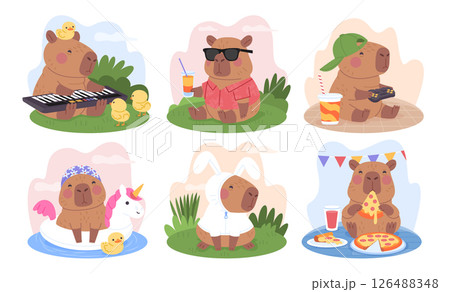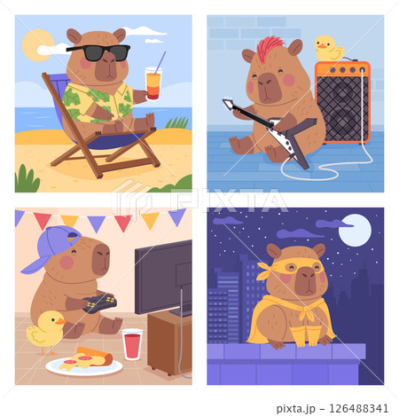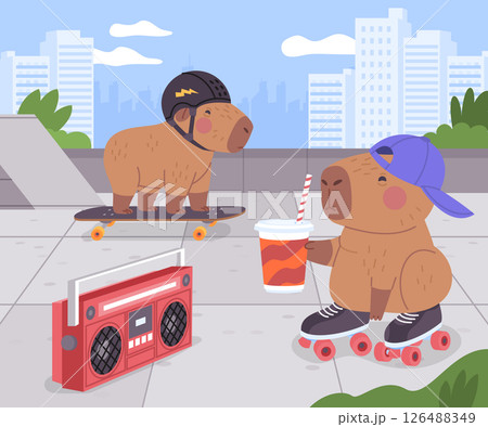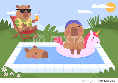 Sea Lion and Seal Cartoon Characters in Summer Theme