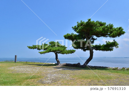 唐崎の松、唐崎神社「近江八景/唐崎の夜雨(安藤広重)」/「近江水の宝選定」 (樹齢250年~300年)(現在は3代目の松)