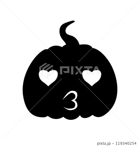 Lovely kissing Jack-o-lantern pumpkin face expression silhouette. Halloween party pumpkin carving. Stock vector illustration isolated on white background in flat style.