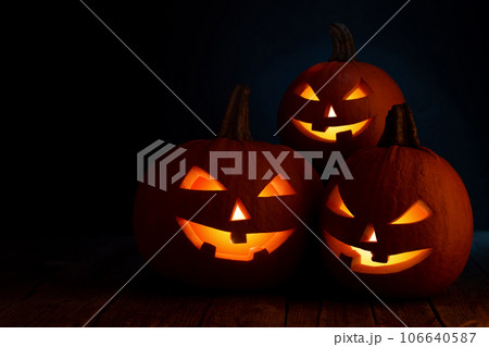 Three Halloween Pumpkins and candles