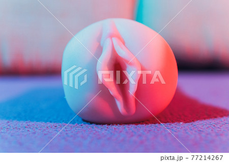 Close-up of male sex toy, realistic vagina masturbator.