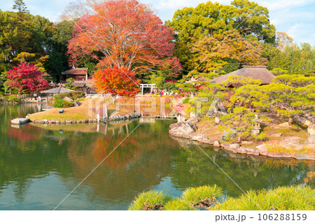 【日本三名園】特別名勝 後楽園の晩秋 沢の池と紅葉2 岡山県岡山市北区