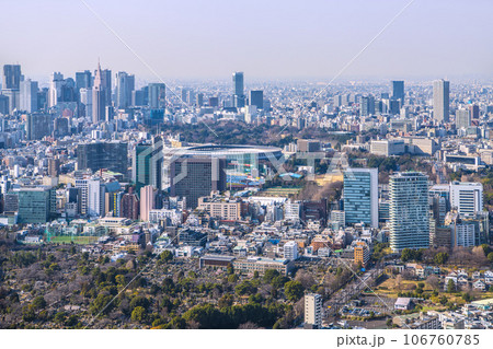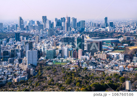 日本の東京都市景観 国立競技場(新宿区霞ヶ丘町)や新宿副都心など、新宿を一望