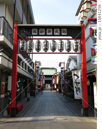 日本の川崎都市景観 川崎大師駅前・川崎大師 表参道厄除門やごりやく通りなどを望む
