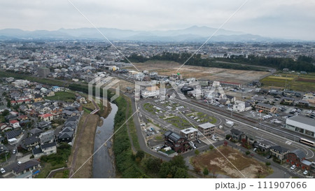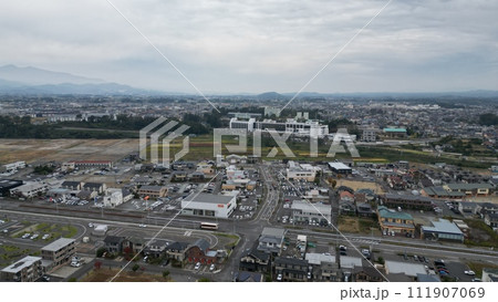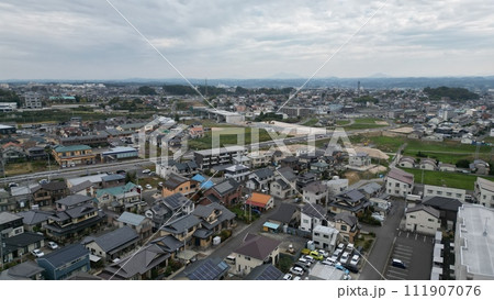 日本の東京都市景観 かっぱ橋道具街や「菊屋橋」交差点の車の流れなどを望む