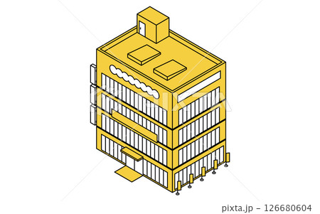 大型商業施設、シンプルな線画のアイソメトリックイラスト