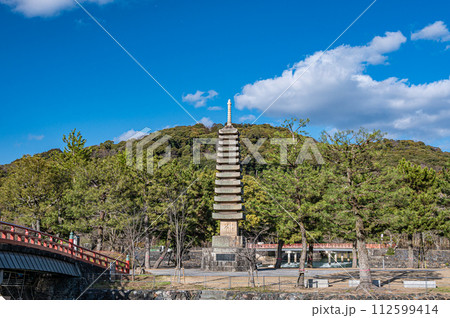 宇治公園塔の島へ渡る橋 喜撰橋 十三重石塔 京都府宇治市