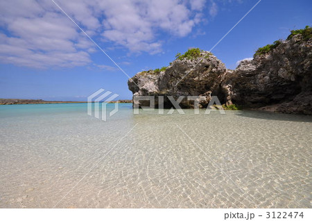 隆起性サンゴ礁の島で、サンゴを起源とする石灰岩で出来ている海岸線