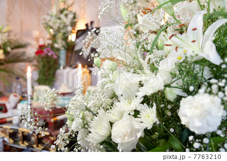フラワーアレンジメントとキャンドル 供花 イメージ
