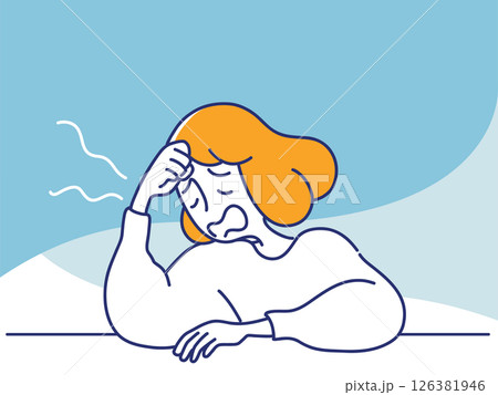 ADHD people concept, girl is a headache because tired of doing work Difficulty learning. Dizzy man.vector