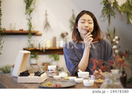 エッセンシャルオイルの匂いを確認するエステティシャン