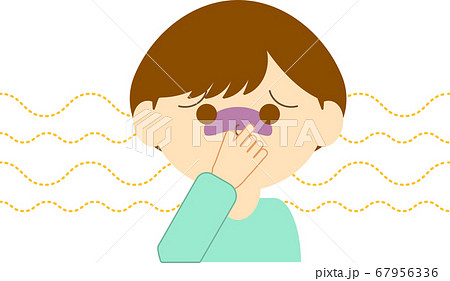 ニオイに鼻をつまむ男性 アイコン 正面 上半身