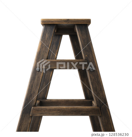 Wooden ladder with rustic finish stands against plain background, showcasing its sturdy construction and natural texture. ladder dark wood and simple design evoke sense of vintage charm