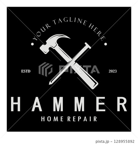 retro vintage crossed hammer and nail logo for home repair services, carpentry, badges, builders, woodworking, construction, vector