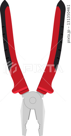 Illustration of metal pliers with red handles and black grip, used for gripping and cutting.