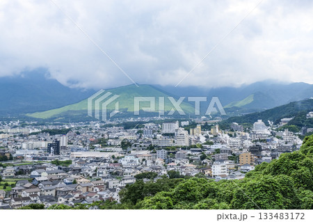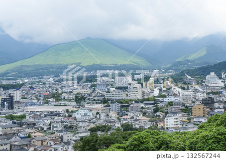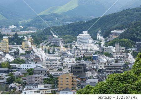 高台にある展望台から眺める鉄輪の温泉街