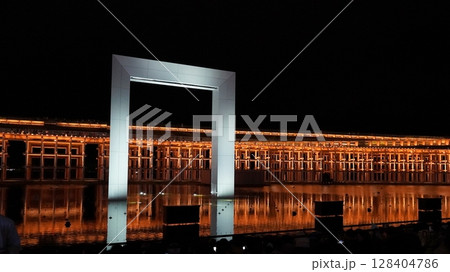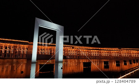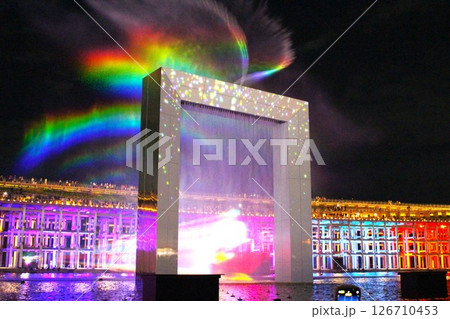 「幻想的なライトアップ!カラフルに輝く噴水ショーの夜景」
