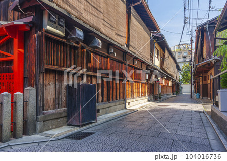 京都祇園 有楽稲荷大明神(織田稲荷)と祇園の街並み