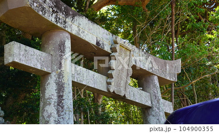 島根半島 四十二浦 手結浦津上神社の緑色のしめ縄