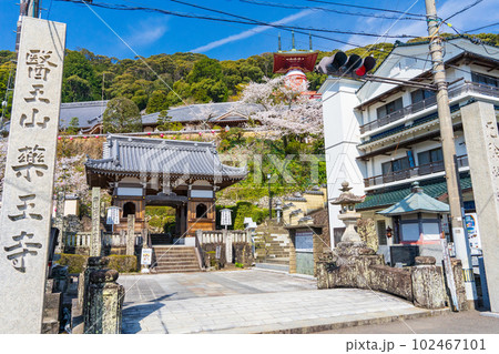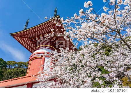 四国八十八ヵ所 薬王寺の瑜祇塔と満開の桜
