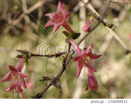 早春に花を咲かせる山野草 スイカズラ科ウグイスカグラの淡紅色の花