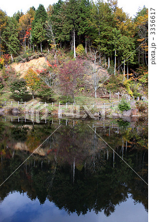 四季の郷の池に映った山
