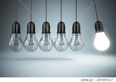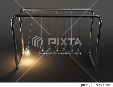 Perpetual motion with idea light bulbs. 3d lightbulb as symbol of creative process. Business brainstorming. Banner design. Realistic isolated electricity element. Vector innovation concept