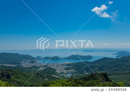 小豆島 寒霞渓 四方指展望台からの内海湾と草壁港 寒霞渓ロー