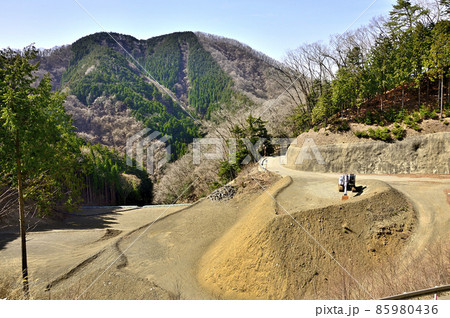 道志山塊の大丸より矢平山と工事中の富士東部林道を望む