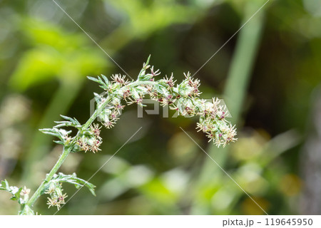 ヨモギの葉っぱと蕾(秋の花粉症の原因植物)