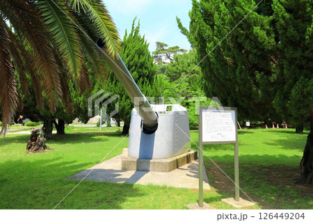【広島県】晴天の海軍兵学校の安式四十口径六吋砲