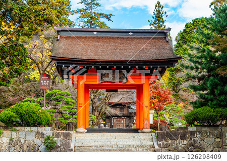 秋の京都 実相院門跡 紅葉に包まれた四脚門