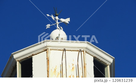 白いタイルの灯台から青空を見上げて