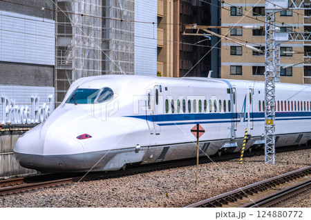 日本の横浜都市景観躍進する新横浜。新横浜駅や新幹線N700Sなどを望む