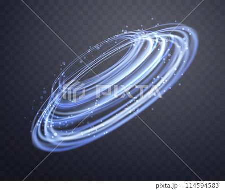 Blue magic glowing ring. Neon realistic energy flare halo ring. Abstract light effect on a dark transparent background. Vector illustration.