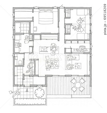 ウッドデッキや趣味スペースのある終の棲家(白黒)